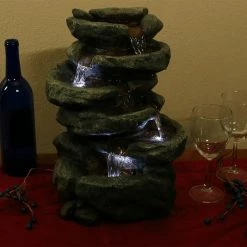 Cheapest 𧨠Sunnydaze Decor 6 Tier Stone Falls Tabletop Water Fountain With LED Light π