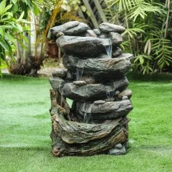 Outlet π Floor LuxenHome Rectangular Outdoor Fountain With LED Lights And Bronze Birds π