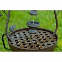 Welcome guests to your garden with the merry, bubbling Alpine 7 Hanging Cup Tiered Outdoor Floor Fountain. From fleur de lis finial to six mini flower pot cups, to delicate accents, this fountain is filled with charm. It’s made of metal and comes in a distressed dark brown finish. Pump included.