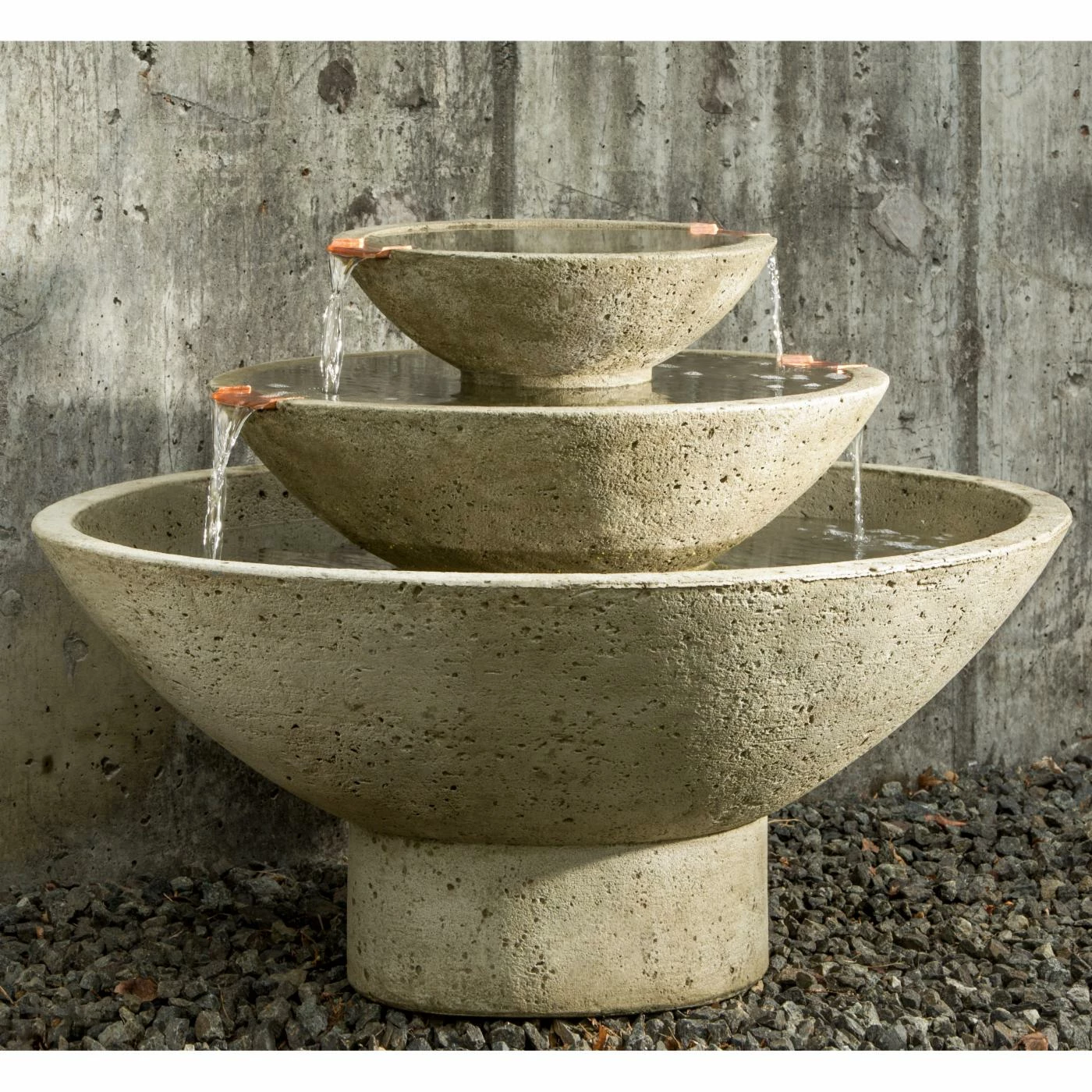 Copper spillers add a warm glint to the three-tiered Campania International Carrera Outdoor Fountain. A durable concrete and cast stone mix makes this fountain impervious to the elements. It includes a recirculating pump so it may be placed virtually anywhere in your landscape. To ensure the fountain works well with your outdoor decor, it’s offered in a choice of available hand-applied colors.