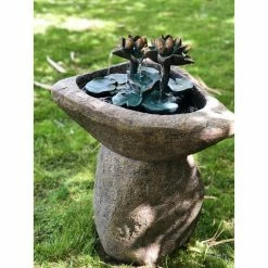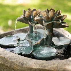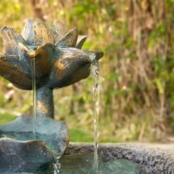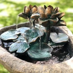 Make your space feel a little closer to nature by decorating it with the Alpine Lotus Rock LED Outdoor Fountain. This stacked stone design features a pool of water. A pair of lotus flowers and series of lily pads provide that tranquil trickle you love about a fountain.