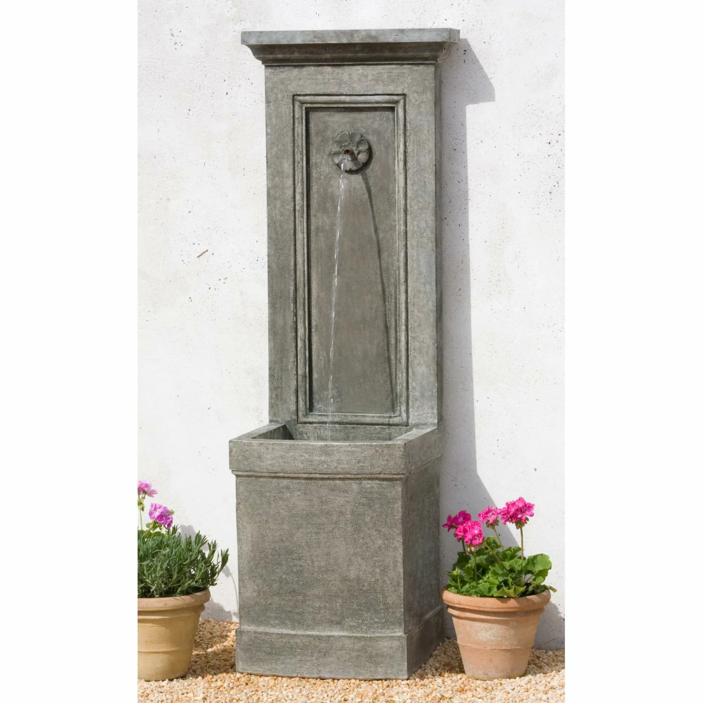 The Campania International Auberge Outdoor Fountain complements any contemporary outdoor space with clean, angular lines. Crafted of cast stone with a hand-applied patina finish that ages to perfection over the years, this outdoor fountain lasts a lifetime and lends organic charm to your home or business. No plumbing is required with an included pump to recirculate water, powered by any standard 3-prong outlet.