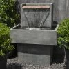 The Campania International Aurelia Outdoor Fountain brings a sophisticated element to your patio or garden with a classic pedestal and basin design. This contemporary outdoor fountain is fashioned of heavyweight cast stone that withstands the test of time and finished in a rich patina that weathers naturally over the years to a rich, organic hue. Your fountain plugs into any standard 3-prong outlet, and no plumbing is required with an included pump to recirculate and conserve water.