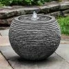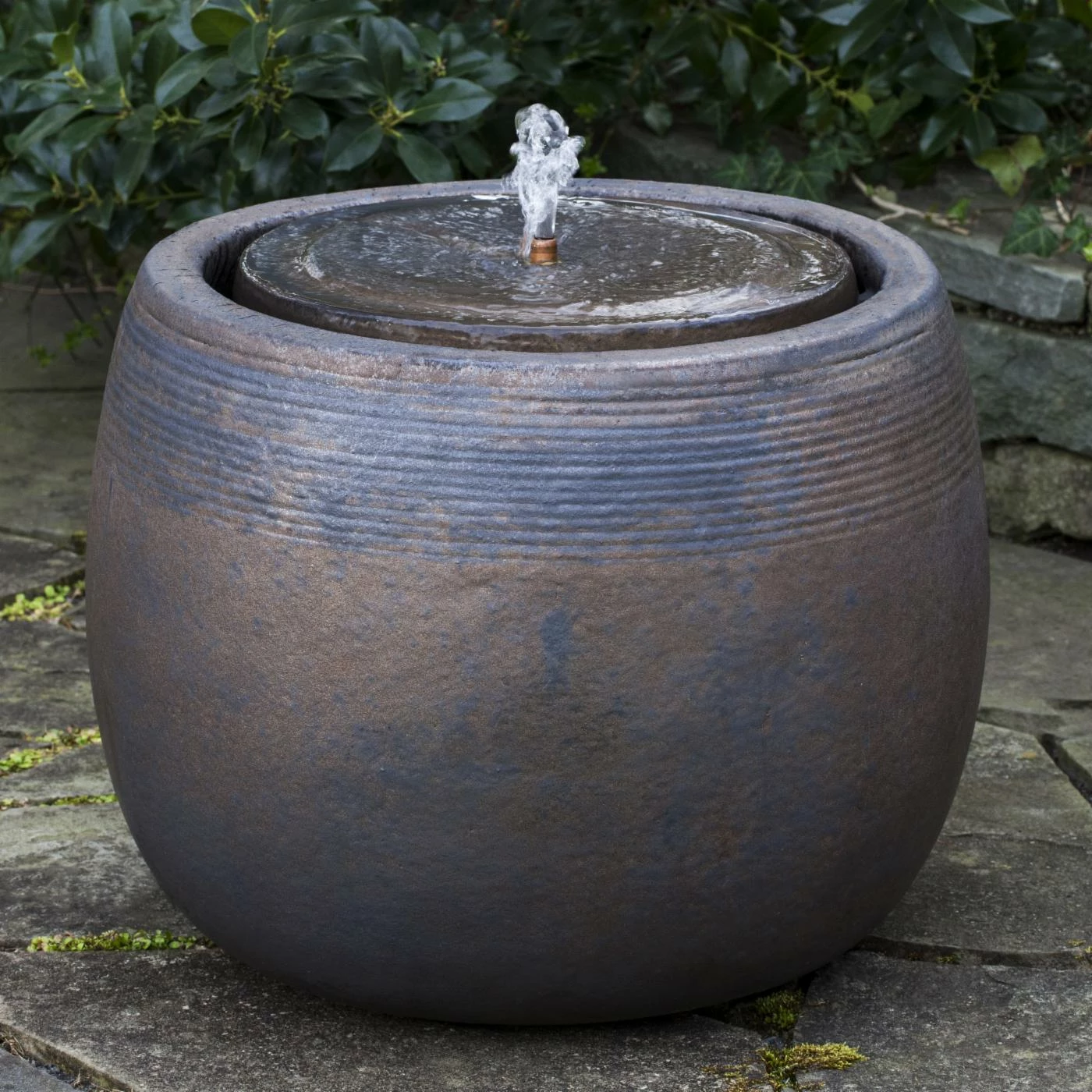 Minimalistic and contemporary, the Campania International Boden Outdoor Fountain features a large outer bowl with ridged detail along the upper lip to add depth and dimension to your home dΓ©cor. This outdoor fountain is powered by a standard three-prong outlet, using an included pump to recirculate water without the need for complicated plumbing. Crafted of cast stone with a hand-applied patina, this fountain develops an aged, weathered finish as time passes.