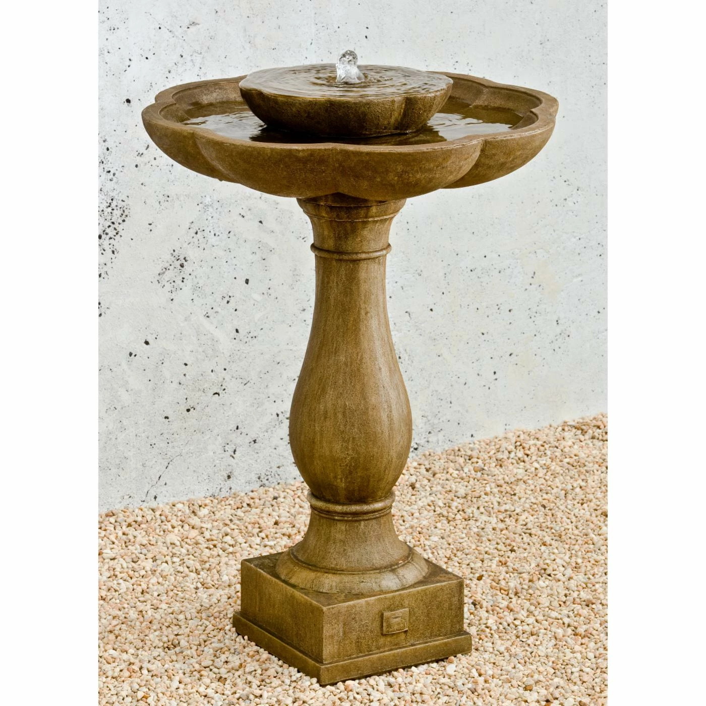 The Campania International Flores Outdoor Pedestal Fountain lends an air of romanticism to your garden or lawn with gentle curving lines and a hand-applied patina that ages naturally over time. This elegant outdoor fountain is crafted of durable, heavyweight cast stone that holds up to the elements beautifully. An included pump recirculates water, conserving resources and removing the need for additional plumbing.