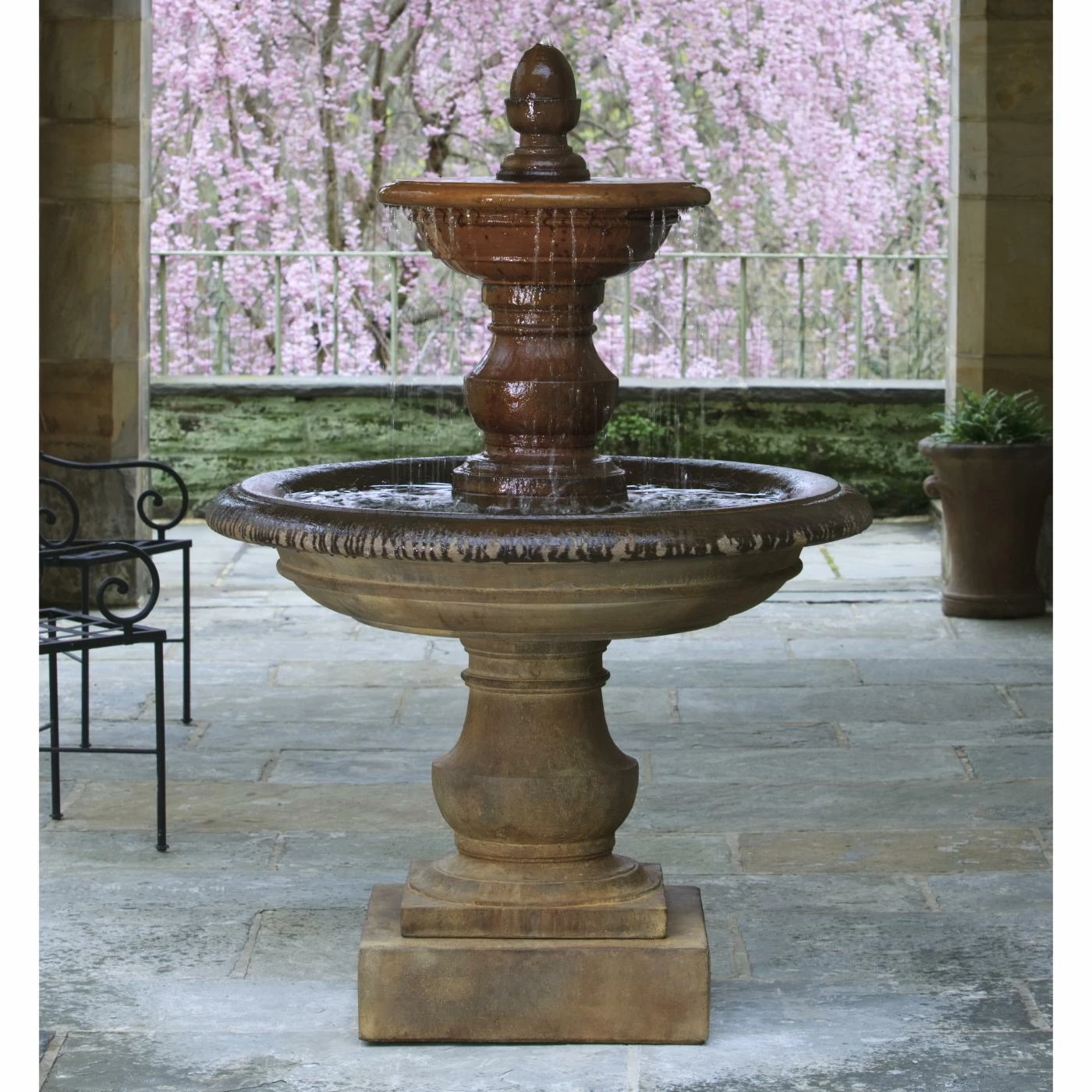 Give your patio or courtyard instant wow factor with the Campania International San Pietro Outdoor Fountain, created from cast stone that lasts a lifetime. This chic outdoor fountain is finished with a hand-applied patina that weathers naturally over the years to a luxurious sheen reminiscent of aged architectural structures. No plumbing is required to operate your fountain with an included pump to recirculate and conserve water.