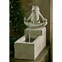 A frog in lotus pose makes the Campania International Zen Plinth Cast Stone Outdoor Fountain a whimsical way to up your patio’s Feng Shui. The delightful frog is perched upon a squared base and spits water into a linear basin. This charming outdoor fountain is crafted from durable mix of concrete and cast stone that makes it impervious to the elements. To ensure it works well with your landscape design, choose from available hand-applied natural pigment stains.