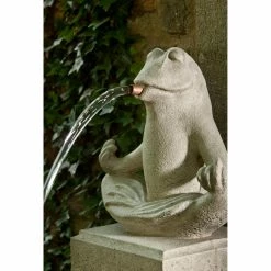 A frog in lotus pose makes the Campania International Zen Plinth Cast Stone Outdoor Fountain a whimsical way to up your patio’s Feng Shui. The delightful frog is perched upon a squared base and spits water into a linear basin. This charming outdoor fountain is crafted from durable mix of concrete and cast stone that makes it impervious to the elements. To ensure it works well with your landscape design, choose from available hand-applied natural pigment stains.