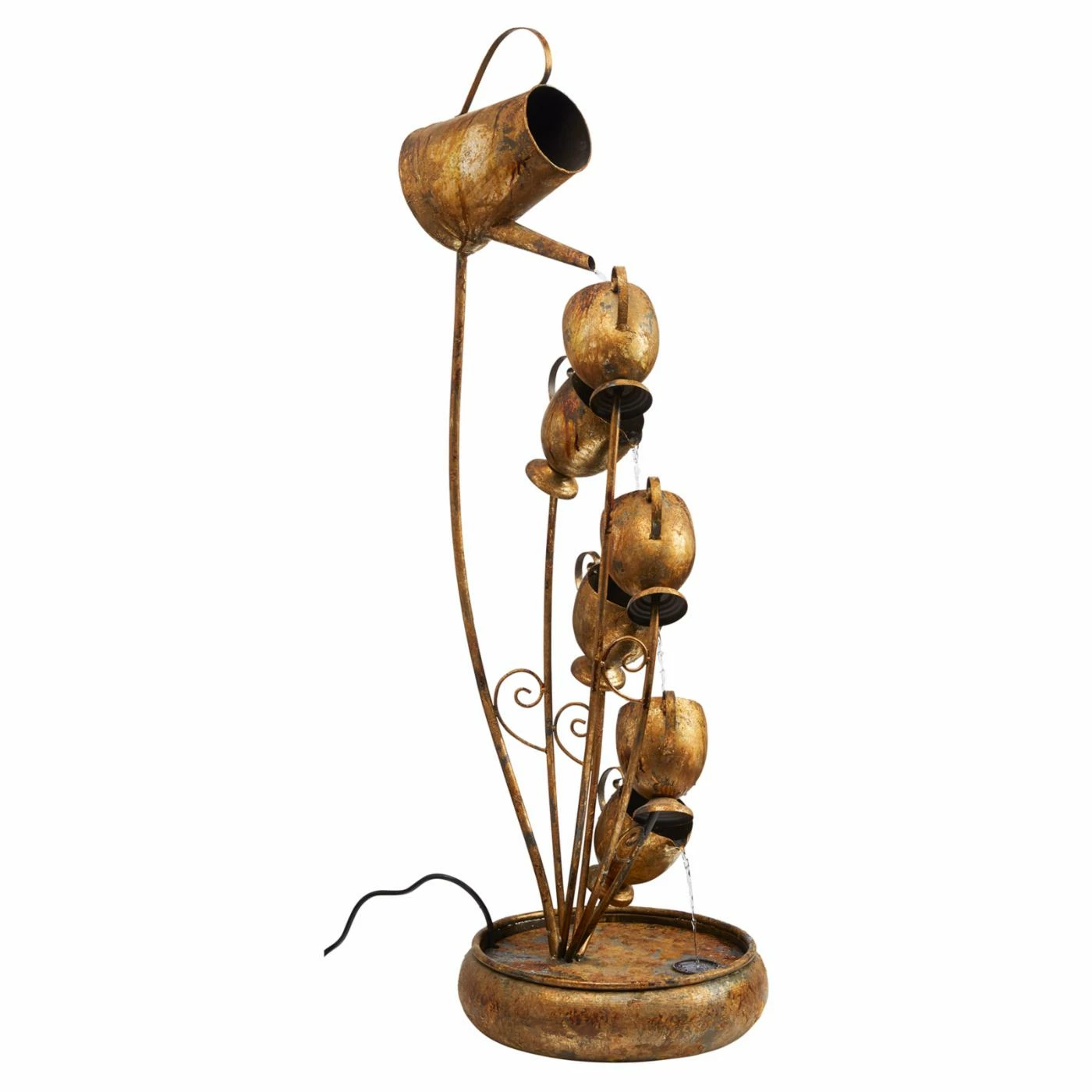 The Design Toscano Garden Tea Party Cascading Garden Fountain creates a trippy scene, perfect for any patio or garden. This striking metal sculpture features a teapot pouring a never-ending stream of water into a cascading lines of cups. Electricity powers this bronze finished fountain.
