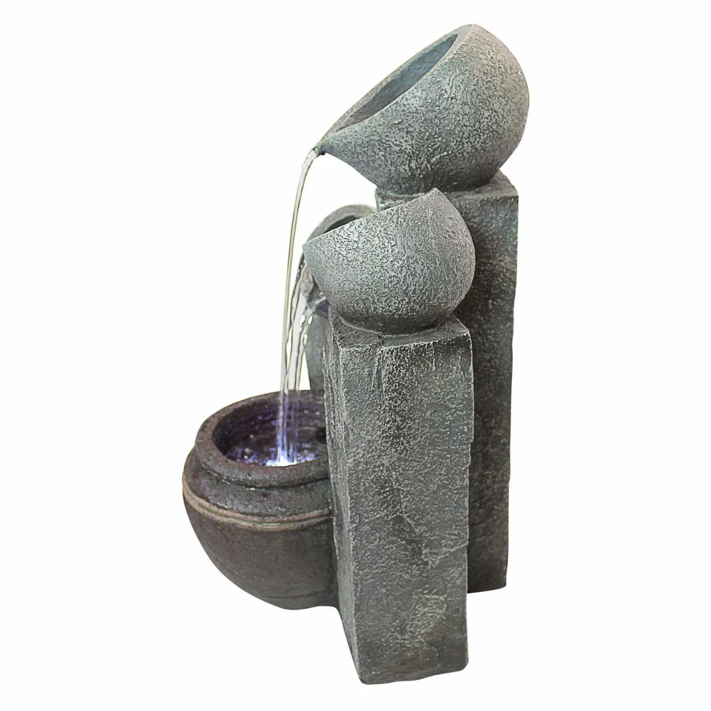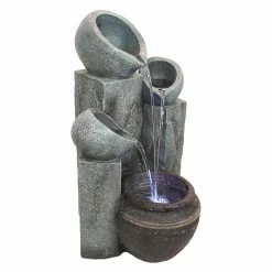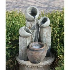 A trio of contemporary pitchers stream water into one bubbling pool beneath, giving the Design Toscano Hadrian’s Villa Four Urn Garden Fountain a babbling sound sure to add a tranquil ambiance to your space. Cast in durable resin, this piece realistically resembles aged stone, lending sophistication to your patio or garden area with ease. The included pump recycles water through a hidden reservoir, keeping water usage and maintenance to a minimum. Fully weather resistant, this fountain will not crack, warp or fade when exposed to outdoor elements.