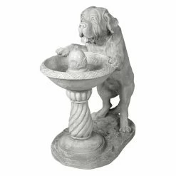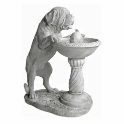 The Quenching a Big Thirst Sculptural Fountain is a whimsical way to add a water feature with a canine charm to any yard. This highly detailed fountain has an electric pump that keeps the bubbling water in motion and features a weathered stone finish.