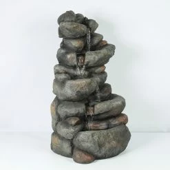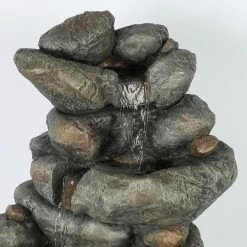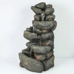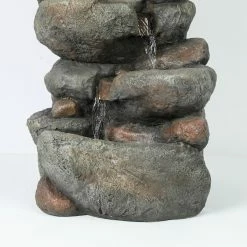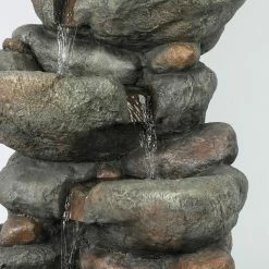 Create a lush, natural garden retreat in your backyard with the LuxenHome 33.5H in. Cascading Rock Outdoor Fountain. Realistic finishes and textures make this outdoor fountain look like a stack of real rocks with a calming, cascading waterfall. The electric pump is included to recirculate the water from the bottom basin. This fountain gives your space a feeling that’s straight out of a mountainous landscape.