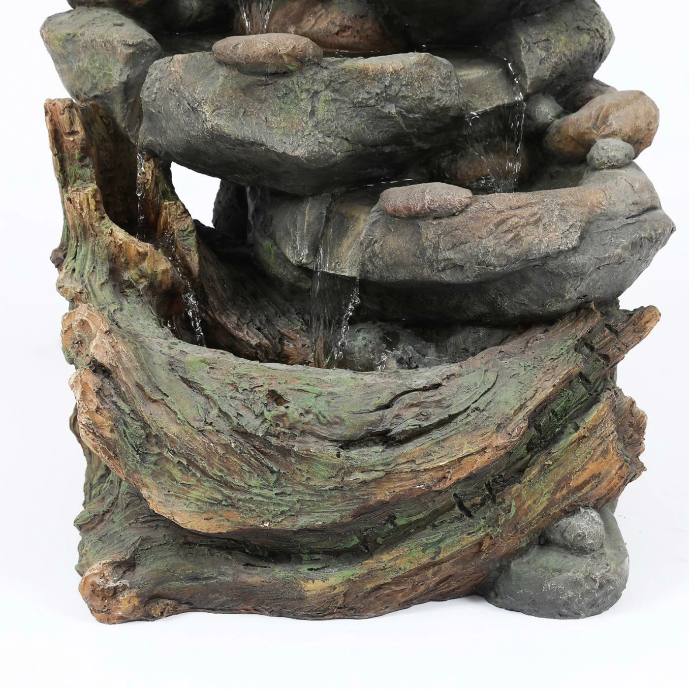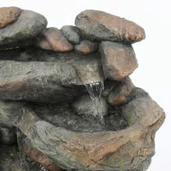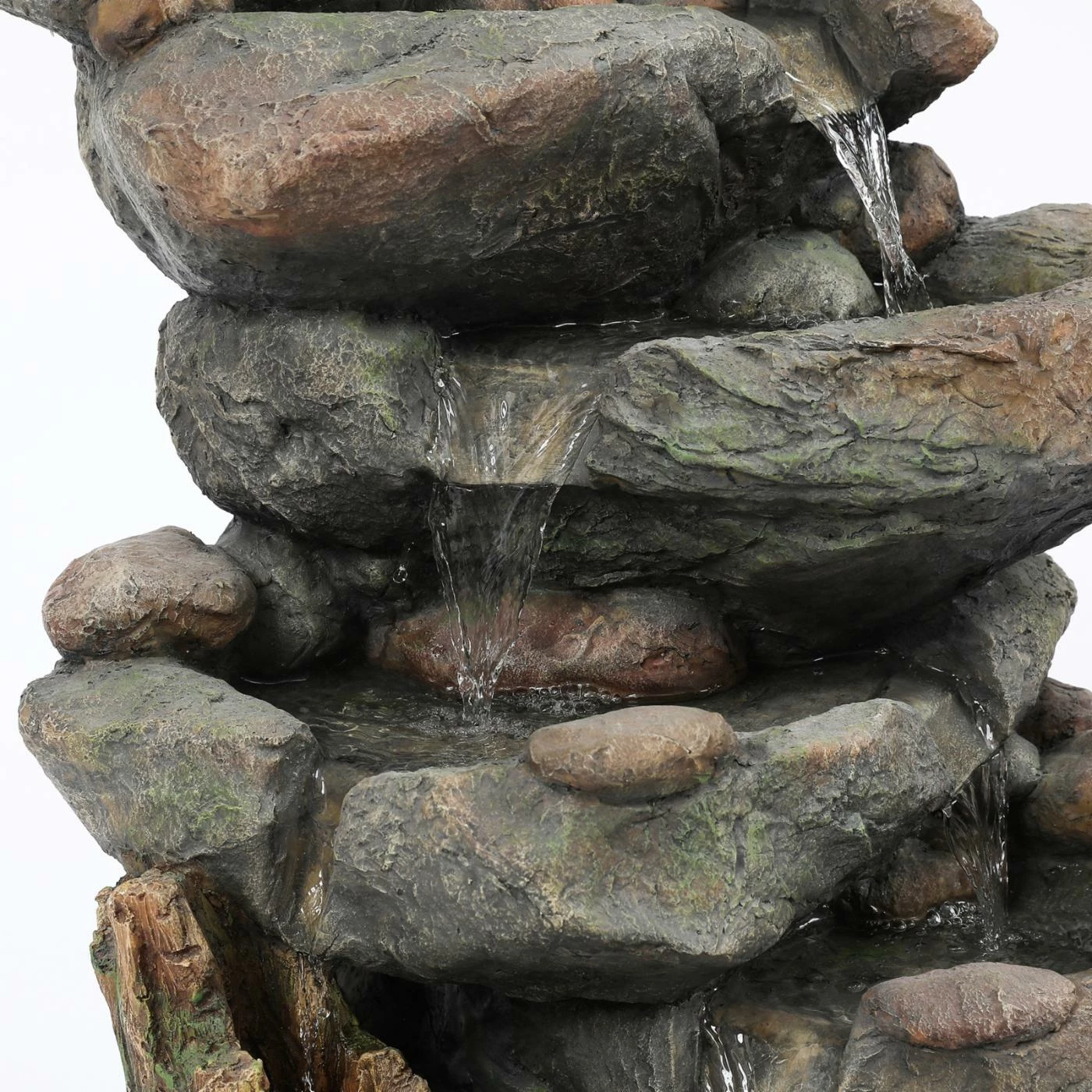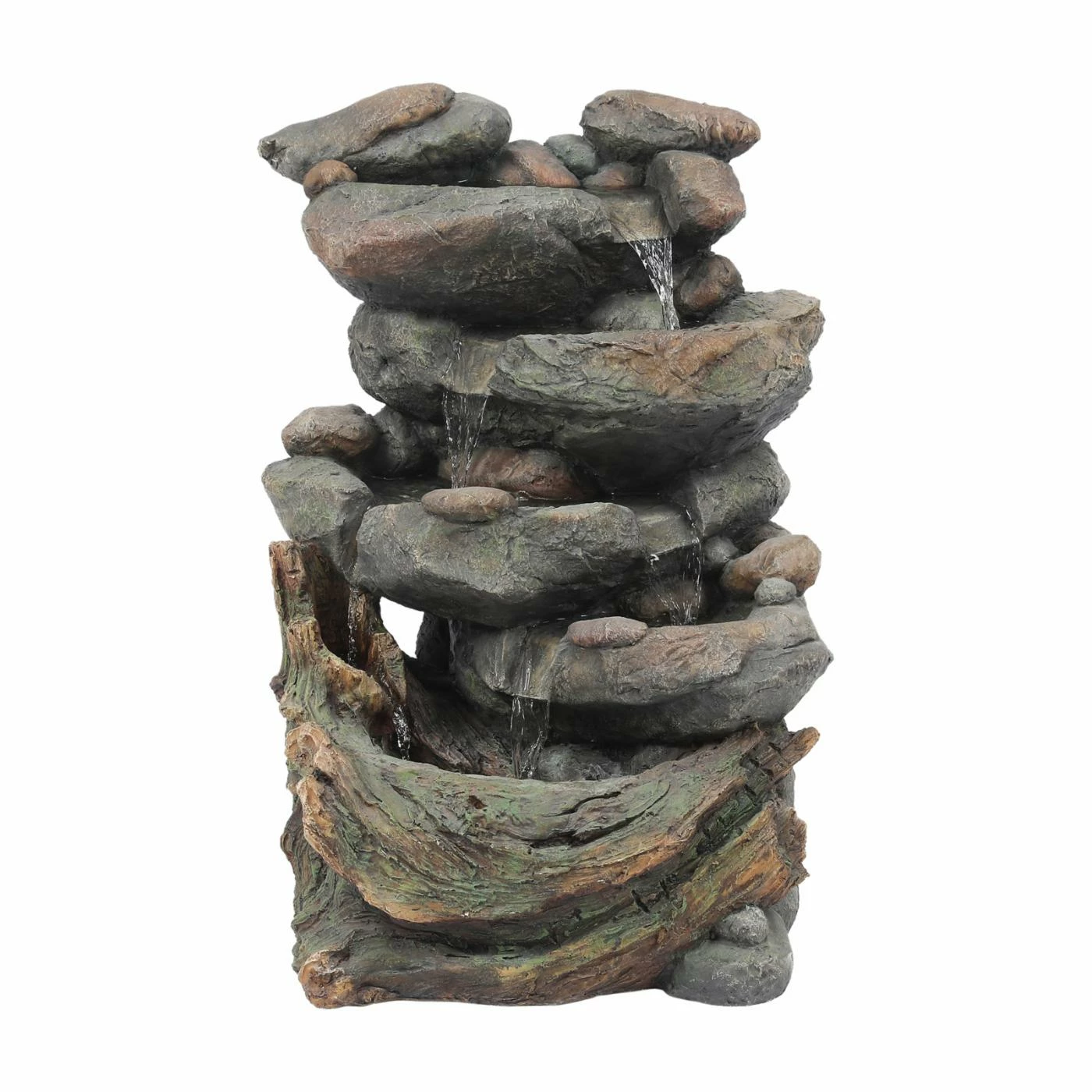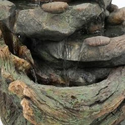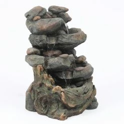 The LuxenHome Cascading Rock Outdoor Fountain looks like a natural waterfall straight from a mountainous landscape. The sturdy polyresin construction is formed and finished to look like stacks of rocks and wood for a rustic look that blends with your lush outdoor landscape. Water falls from basin to basin and is recirculated by an included electric pump. You’ll feel like you near a real mountain stream when you sit next to this outdoor fountain on your patio or in your garden.