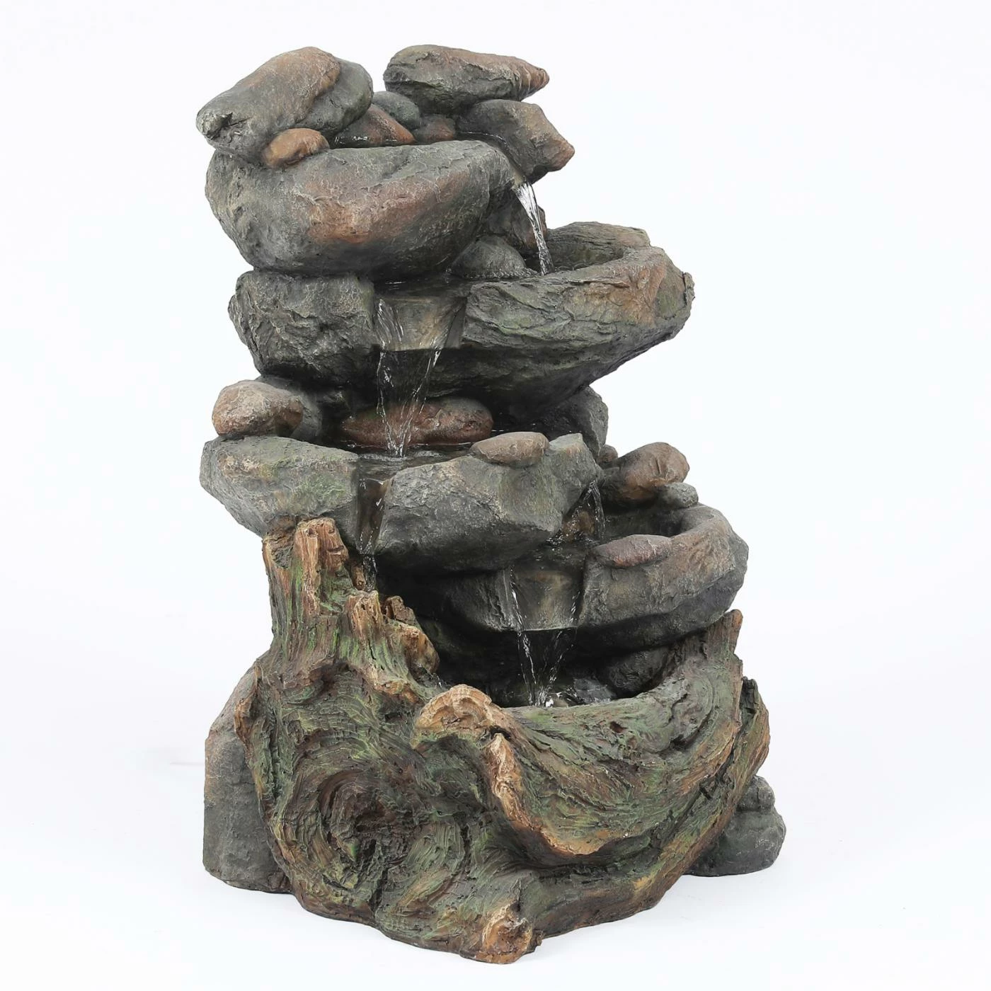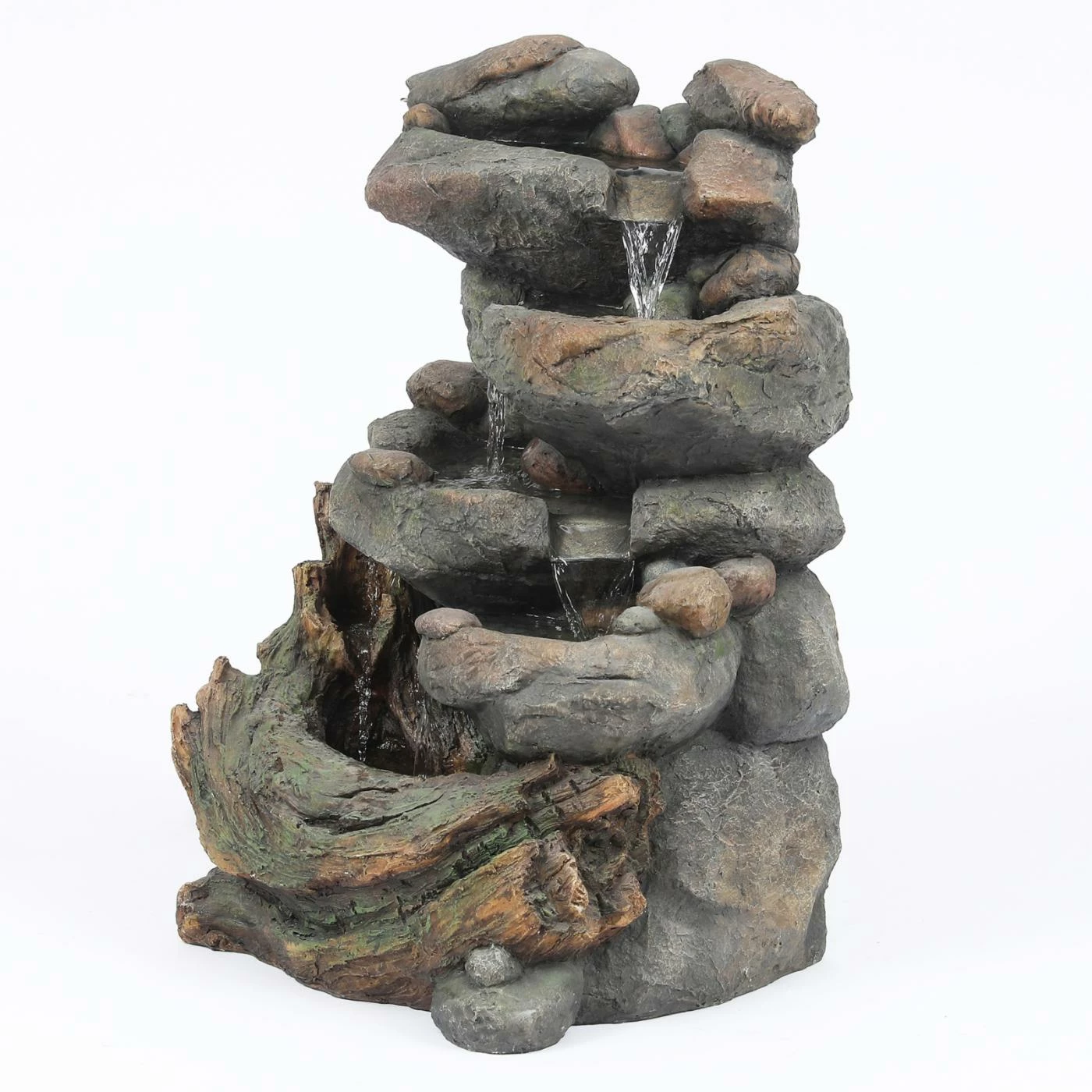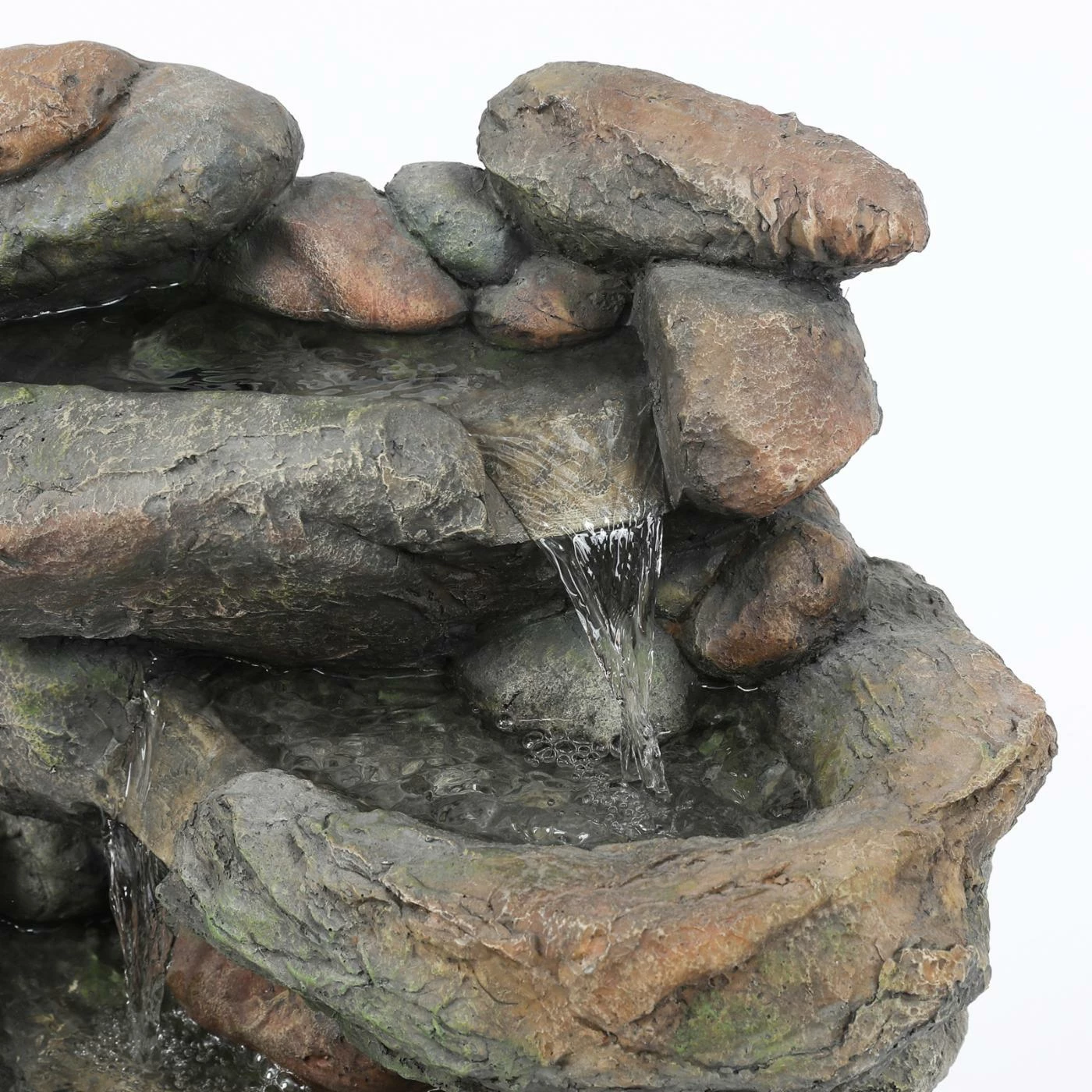 The LuxenHome Cascading Rock Outdoor Fountain looks like a natural waterfall straight from a mountainous landscape. The sturdy polyresin construction is formed and finished to look like stacks of rocks and wood for a rustic look that blends with your lush outdoor landscape. Water falls from basin to basin and is recirculated by an included electric pump. You’ll feel like you near a real mountain stream when you sit next to this outdoor fountain on your patio or in your garden.