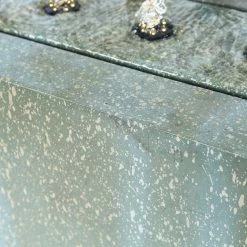 - Rectangular base with speckled turquoise patina