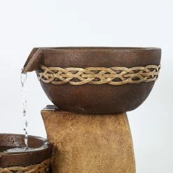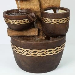 The LuxenHome Tiered Pots Outdoor Fountain looks like a cascading fountain of tiered ancient pots, but it’s actually made of durable polyresin with old-world details. Dark brown-finished pots sit on pedestals and are decorated with woven gold banding. Water is recirculated by the electric pump that is included with the outdoor fountain. Add this fountain to your cozy patio or secret garden.