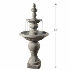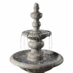 Relax and unwind to the soothing sounds of running water in your own backyard with the Peaktop Outdoor Icy Stone Two Tier Waterfall Fountain. Constructed out of resin and fiberglass, the fountain resembles stone, but weighs a fraction of a genuine stone statue for easy carrying. The materials are durable and highly weather resistant to provide many seasons of carefree use. No plumbing is required to set up the fountain, as the included pump keeps the water recirculating. Powered by electricity, the fountain plugs into any standard grounded outdoor wall outlet.