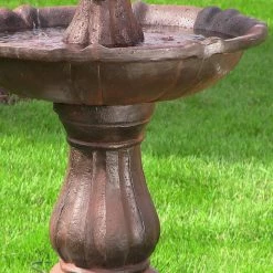 A traditional fountain gets a modern, energy-efficient update in the design of the Sunnydaze Decor 2-Tier Solar Powered Outdoor Fountain. This birdbath fountain is perfect for the garden or landscaped area with no need for an outlet! To run on battery mode simply press the Battery On/Off button. The battery will now power the pump. On the battery mode it can run for up to 4 hours on cloudy days or at night. When the battery power is depleted, the system will automatically change back to solar powered mode and start again when there is sufficient sunlight. A fully charged battery will operate up to 4 hours after the sun goes down.