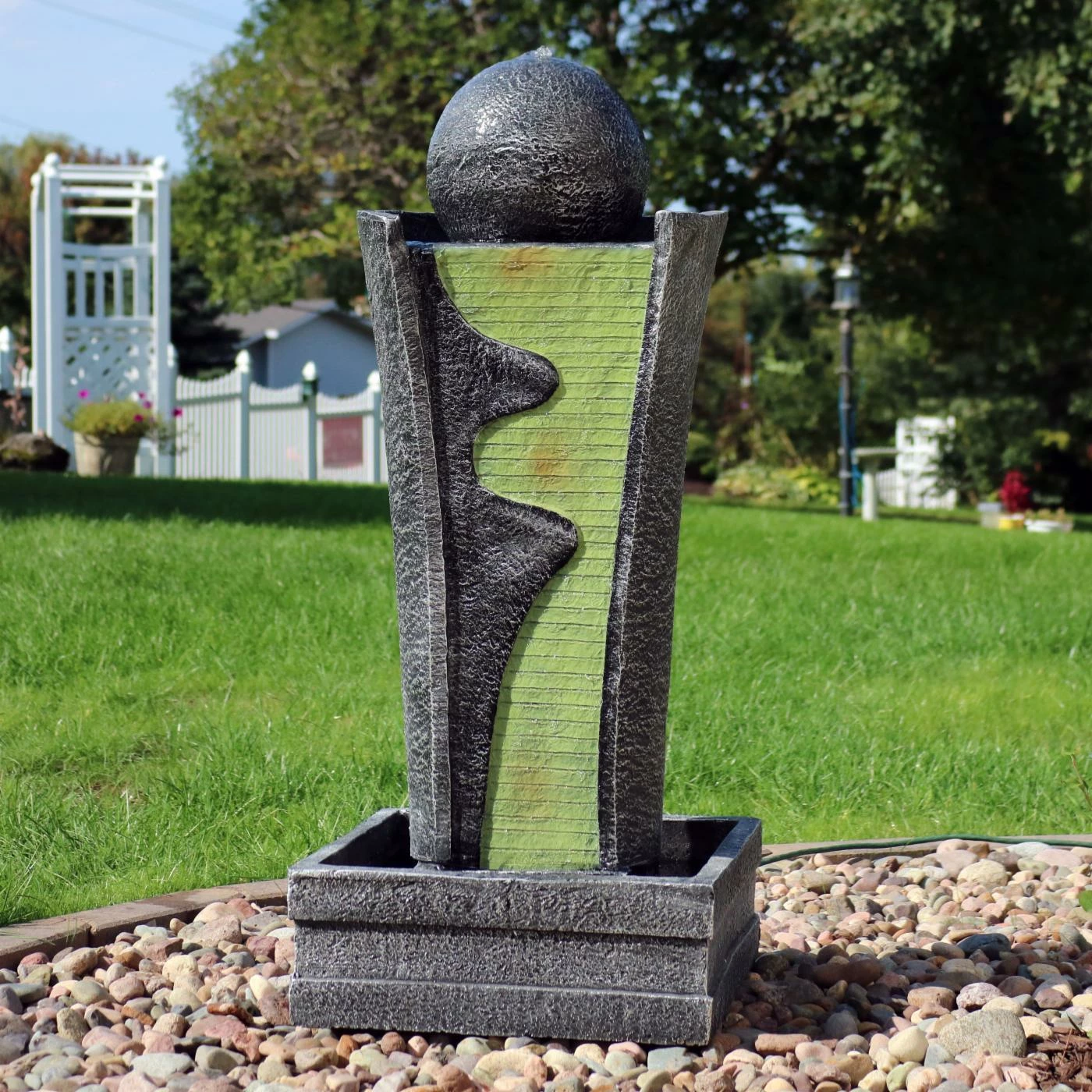 Some sculptures speak to us on an artistic level, but you’ll hear the Sunnydaze Decor Art Deco Rippling Stream Outdoor Water Fountain speaking each time you walk outdoors. This contemporary fountain has a bold, abstract shape that’s crafted from an all-weather mix of polyresin and fiberglass that shows off stone-like textures under a multicolored finish. The low-maintenance design keeps the water moving thanks to a submerged, recirculating pump. The design of this fountain eliminates the need for additional plumbing, so you can set it almost anywhere. All you need to get started is a bit of open space and a standard electrical outlet.