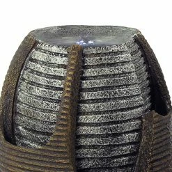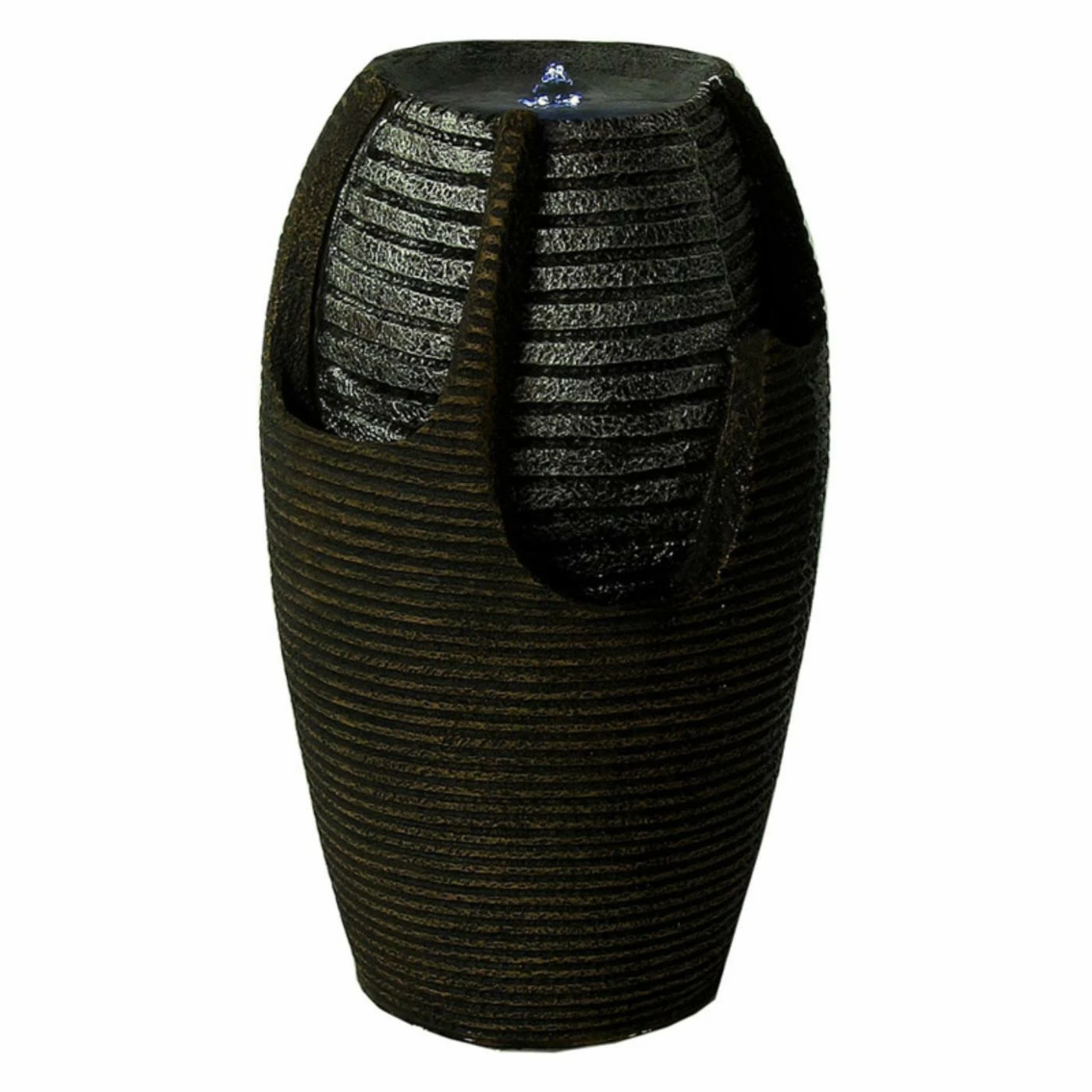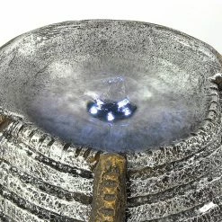 Powered by the sun, the Sunnydaze Decor Bubbling Pot Solar-on-Demand Outdoor Fountain with LED Light treats you all of the benefits of a backyard fountain while keeping energy use to a minimum. A green and gray finish makes the lightweight, durable polyresin fountain seem as if it were crafted out of stone that has been weathered by time. An LED light illuminates the piece by night, so you can watch the water and admire the details of the fountain around the clock. No plumbing is needed, making the fountain suitable for use anywhere.