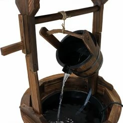 Crafted from genuine fir, the Sunnydaze Decor Old-Fashioned Wood Wishing Well Fountain with Liner brings tranquility to your backyard. The traditional styling features a round well, detailed roof and tipped bucket. The convenient liner makes cleaning quick and easy. Setup takes only minutes and it plugs in to any outdoor outlet.