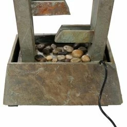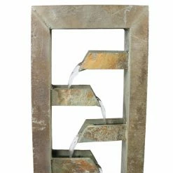 An ode to Japanese gardens and fountains, the Sunnydaze Decor Stacked Slate Freestanding Garden Water Fountain brings a time-honored aesthetic to your outdoor area. Water flows through eight spouts and lands in a charming bed of river rocks before being recirculated to the top. Made with natural slate, it operates via an electric pump. Simply plug it in to enjoy!