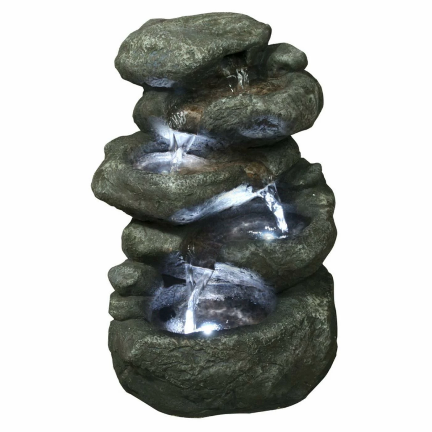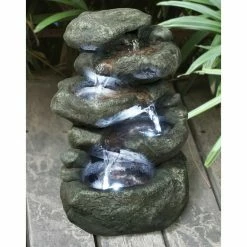 Design a calm and tranquil space with the Hi-Line Five Level Rock Fountain with LED Light. This striking stacked rock fountain is beautifully sculpted and crafted from quality resin. Sit back and relax to the gentle sounds of cascading water.