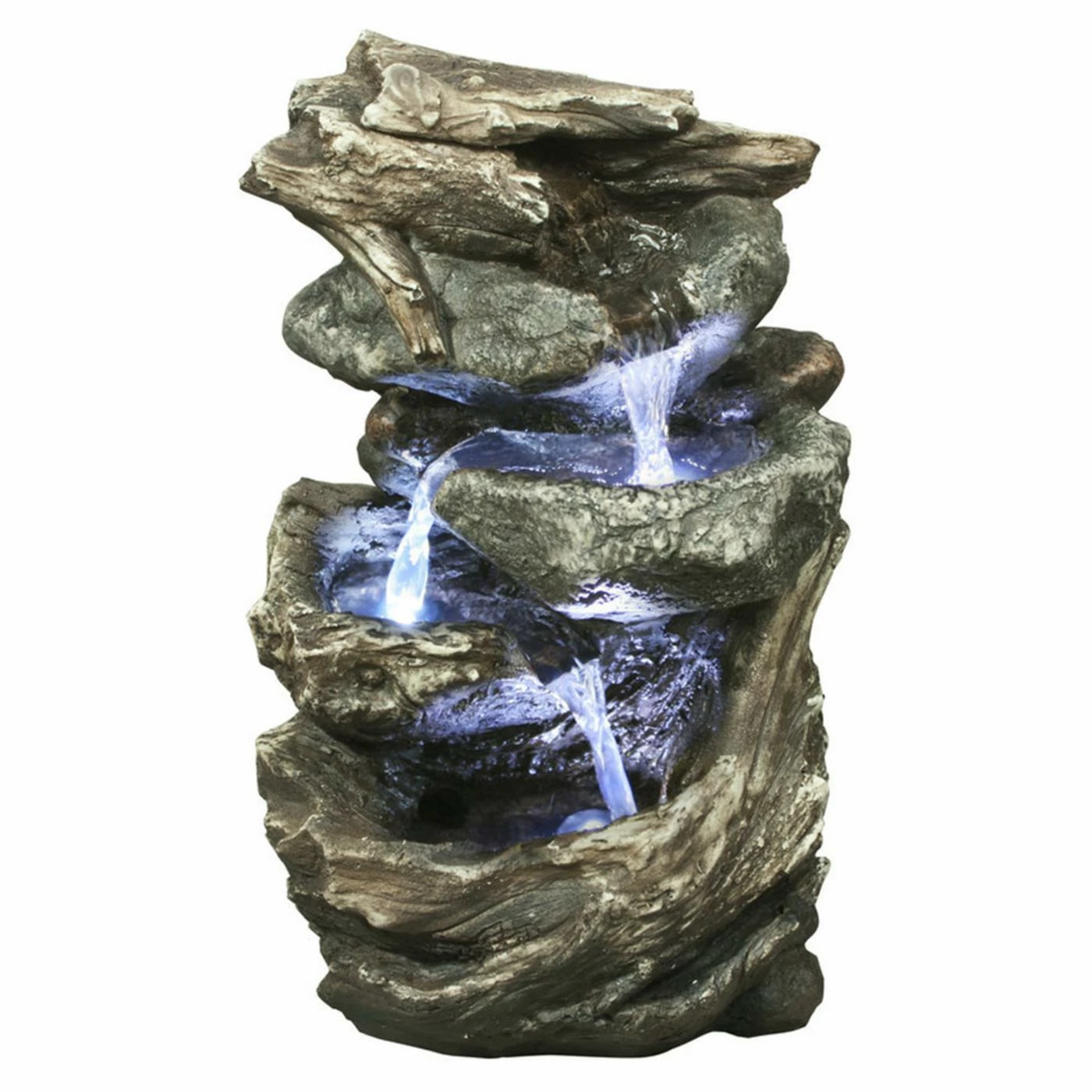This realistic Hi-Line Log and Stone waterfall Fountain with LED Light adds illumination to spaces after the sun goes down. With its realistic rock formation and cascading water, this fountain is the perfect piece for creating a calm and tranquil atmosphere.