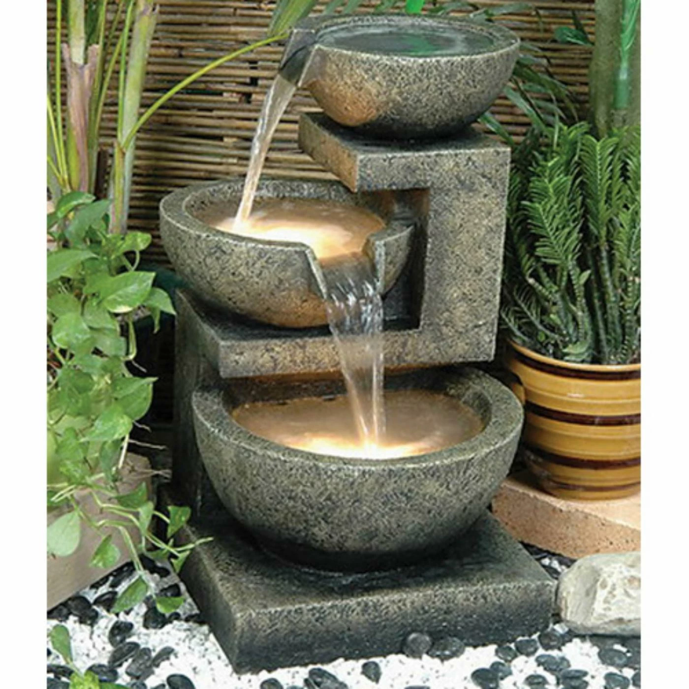 A gorgeous blend of classic and contemporary design, the Alfresco Home Rocca Fountain with Pump and Light is crafted from resin and finished to look like real stone. Combing the soft glow of lights with the tranquility of water, this fountain brings peace and serenity to your home. The LED lights in this fountain last longer than traditional lighting while the submersible pump adds precision to the flow of water.