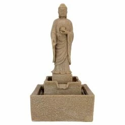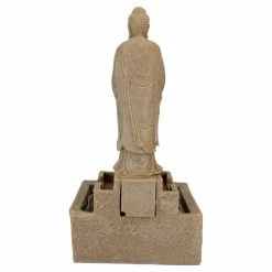 The Design Toscano Earth Witness Square Buddha Illuminated Garden Fountain belongs anywhere peace is welcome, from a deck to an Asian garden. Tranquil cascading streams of water flow and recirculate to create a meditative retreat. This intricately formed resin Buddha is complete with a sandstone finish and its left hand cupped indicating spiritual enlightenment.