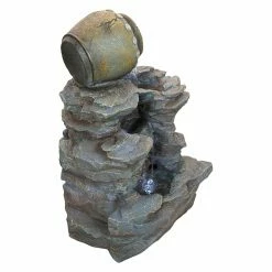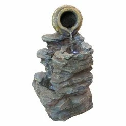 An Old World jug spills water down the stony path of the Design Toscano Spilling Jug Cascading Garden Fountain, creating a playful babbling sound sure to contribute calm and tranquility to your home. Glowing LED lights illuminate the path of water for a sparkling, eye-catching display that will give your space the wow-factor you’ve been looking for. The heavy-duty resin construction is weather resistant, making it the perfect piece for your deck, patio or garden area. LED lights and pump are included for easy installation.