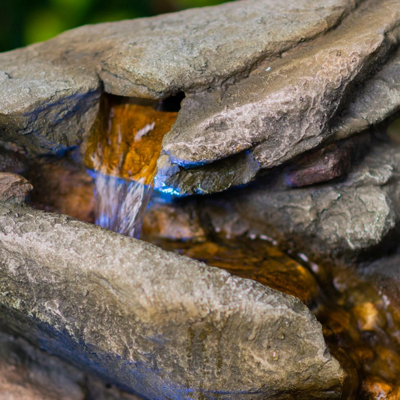 The Hi-Line Gift Ltd. Multi-Level Stone Fountain with LED Lights grabs your attention with the twinkling sound of flowing water – and it keeps you mesmerized thanks to the soothing glow of LED lights. This polyresin fountain is suitable for indoor or outdoor use.