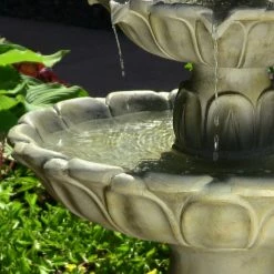 Make an elegant statement in your yard with the Sunnydaze Decor Classic Tulip 3 Tiered Fountain. Water flows from a tulip to three basin tiers, supported by a pedestal base. Crafted from polystone for lightweight durability, it features a beige finish.