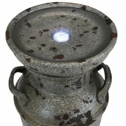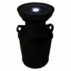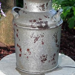 The Sunnydaze Decor Farmhouse Vintage Milk Can Outdoor Birdbath Fountain adds a rustic, farmhouse touch to your patio or front door. Made from lightweight polystone, this fountain features the antique style and texture of a farm milk canister. An LED light illuminates the water, so you can enjoy it anytime, day or night.