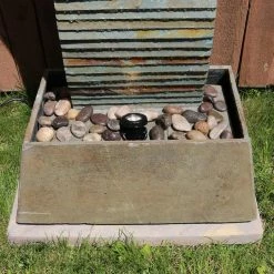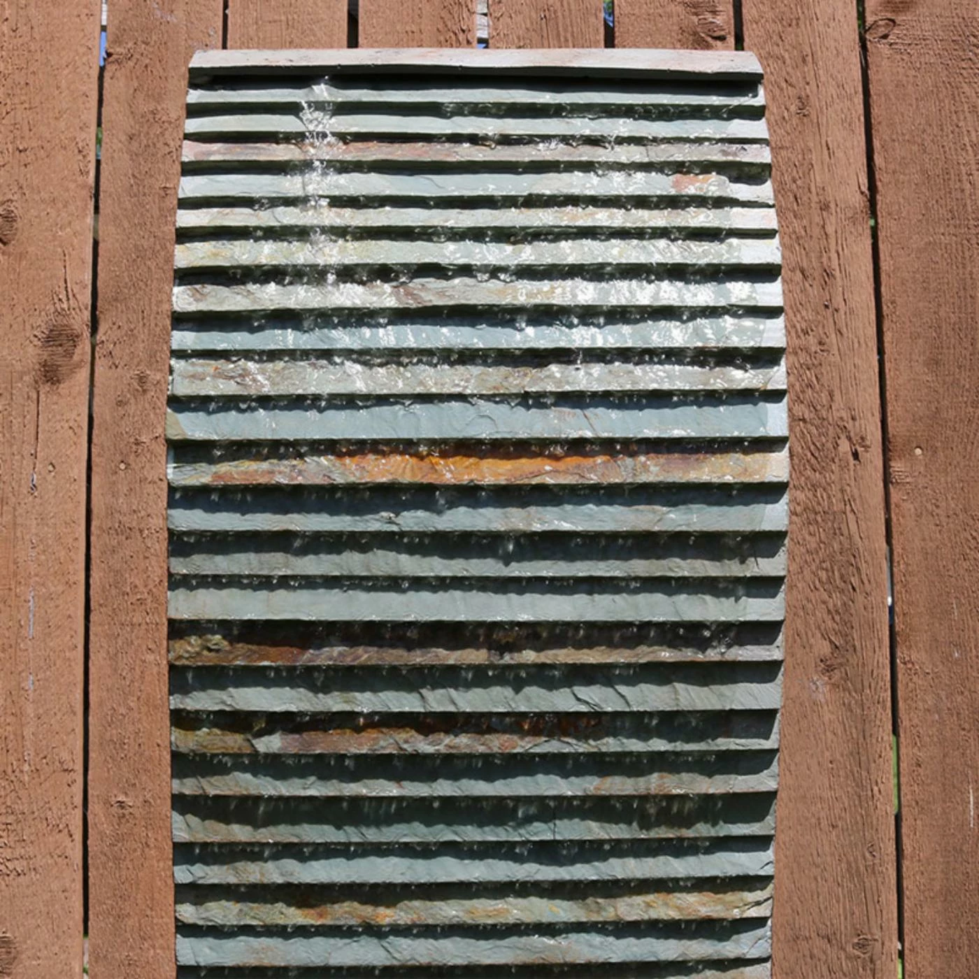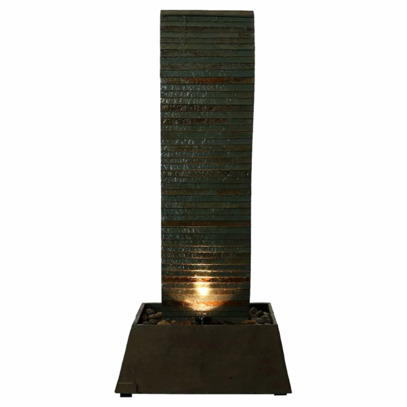 Ensure a calming and inviting environment for you and your guests with the Sunnydaze Decor Spiraling Slate Freestanding Garden Water Fountain with LED Light. Rustic natural slate with a patina is stacked in a flowing, wavy design that encourages a Zen-like ripple sound. A charming river rock bed fills the basin, and is illuminated with an LED light. An electric pump recirculates the water, so there’s no need for plumbing. Simply plug it in and relax!
