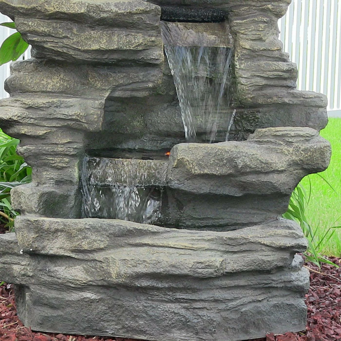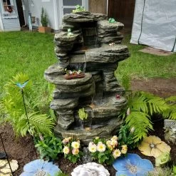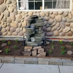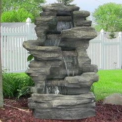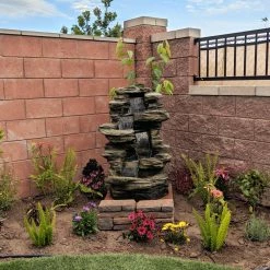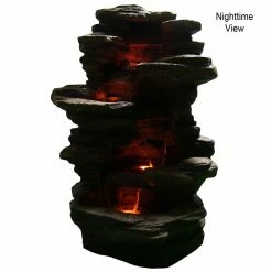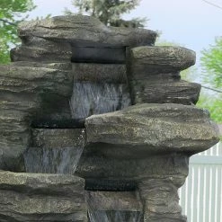 Ambient sound and light is a welcome addition to any outdoor space, and the Sunnydaze Decor Stacked Shale Electric Outdoor Waterfall with LED Light provides just that. Made from durable polyresin, it’s designed and finished for a realistic waterfall look. LED lights illuminate the water pools and make for a charming nightlight. The electric pump recirculates the water, so there’s no need for plumbing – simply plug it in and enjoy!