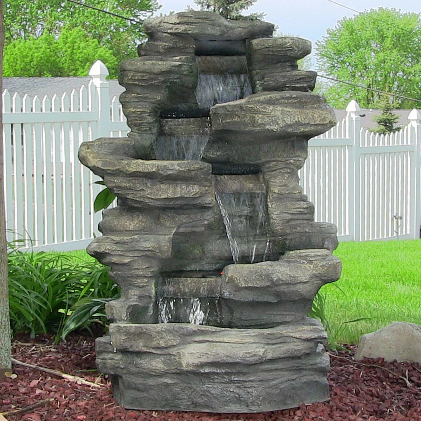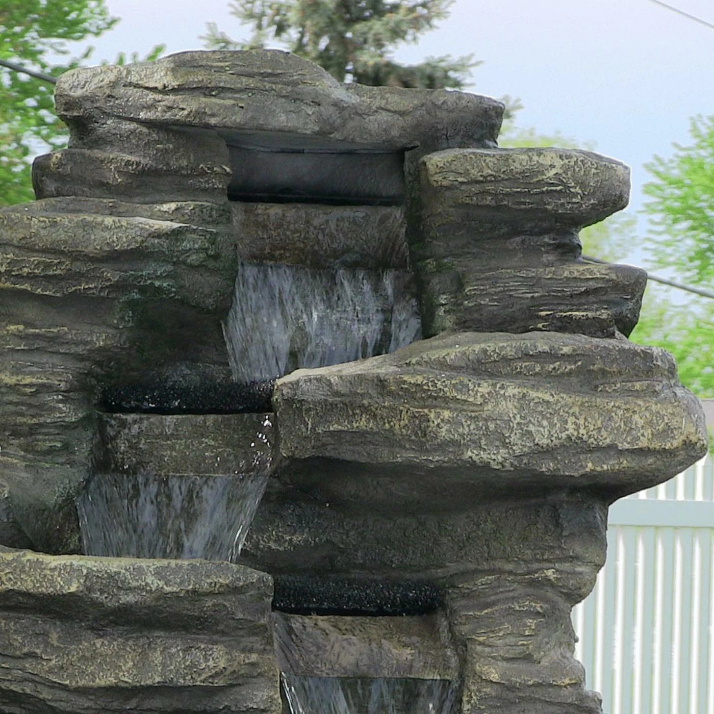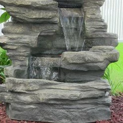 - Polyresin fountain with a rock-colored finished