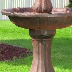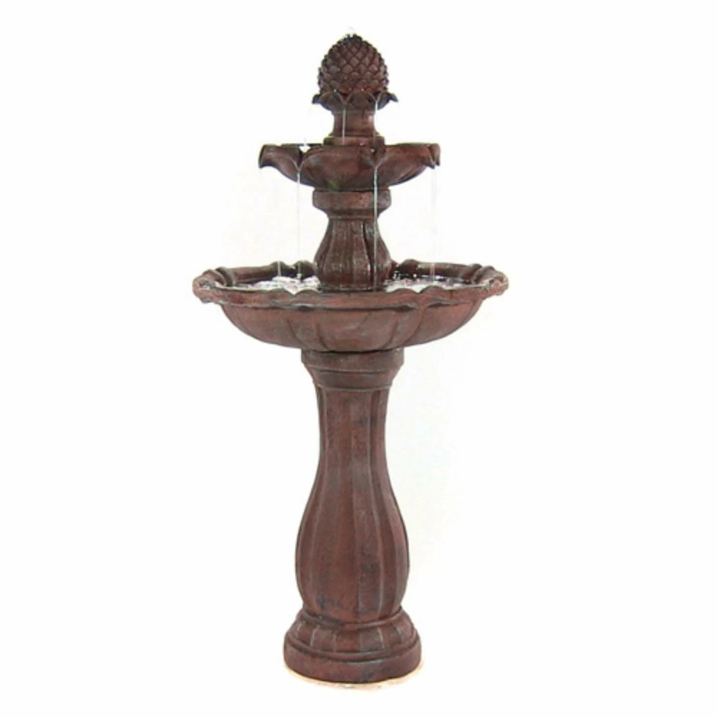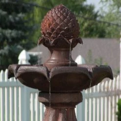 The Sunnydaze 2 Tier Pineapple Solar Powered Fountain adds a welcoming look to your outdoor space with a fantastic pineapple finial and two tiers of water. No plumbing is required, once assembled simply connect the solar pump to the panel and place it in direct sunlight. No more unsightly extension cords running across the yard and hogging the outdoor plugins. Mount and conceal the solar panel in a sunny place and enjoy! The Solar Battery Backup option allows one to harness solar energy even when there is no sunlight! The rechargeable battery pack charges throughout the day (with or without the fountain running) so the gentle water sounds may be enjoyed in the evening as well. You can choose from among the available finish options to create a customized look.