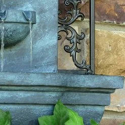 The classically styled Sunnydaze Decor French Lily Outdoor Wall Fountain features beautiful scrollwork trim and an elegant fleur-de-lis at its center. Enjoy the Italian romance of this outdoor solar wall fountain as the water rolls down a decorative leaf into the bowl below; plus, it’s sure to look great on any patio, in the garden or yard. It then creates a gentle and relaxing water sound as the water splits into 3 streams to finally fall into the beautifully detailed basin below. Lightweight enough to be mounted by one person, but durable enough to last for years. The rusty iron color fits into most neutral schemes so finding a place for this piece should be a breeze. Use solar power to energize outdoor decor. No more unsightly extension cords running across the yard and hogging outdoor plugins. Mount and conceal the solar panel in a sunny place and enjoy! The Solar Battery Backup option means the fountain can operate even when there is no sunlight! The rechargeable battery pack charges throughout the day (with or without the fountain running) for enjoyment in the evening as well.