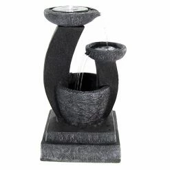 The Sunnydaze Modern Cascading Bowls Solar Powered Fountain brings a piece of modern sculpture into your outdoor space with three tiers of cascading bowls. Once assembled, simply connect the solar pump to the panel and place the panel in direct sunlight. Mount and conceal the solar panel in a sunny place and enjoy! The Solar Battery Backup option allows one to harness solar energy even when there is no sunlight! The rechargeable battery pack charges throughout the day (with or without the fountain running) so the gentle water sounds may be emjoyed in the evening as well. To run on battery mode simply press the Battery On/Off button.