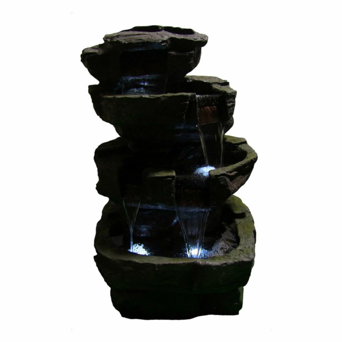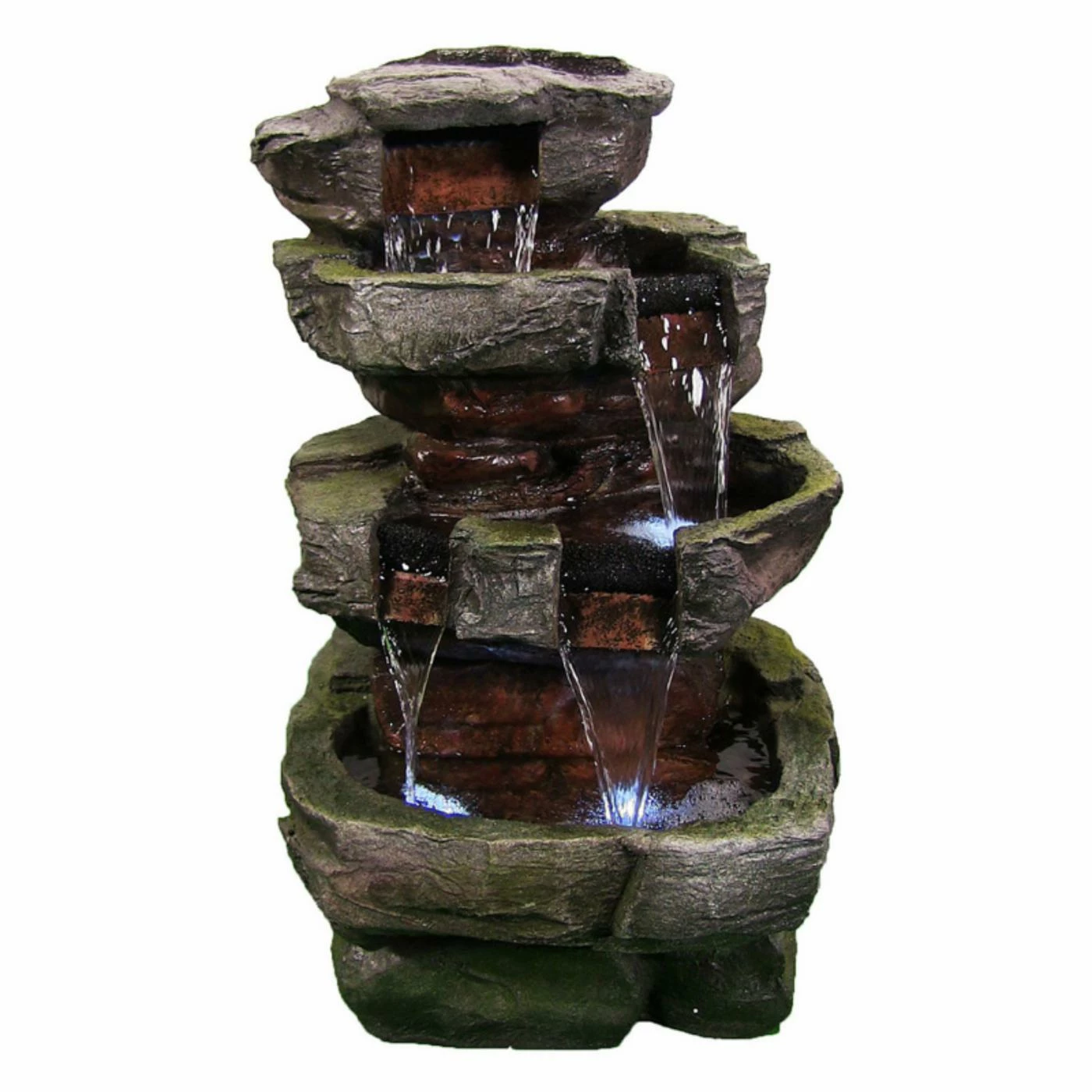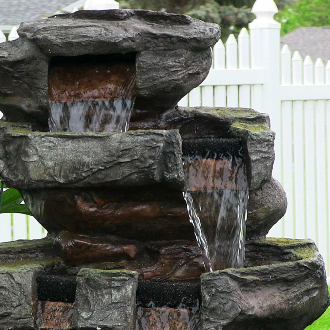 The Sunnydaze Tiered Stone Fountain with LED Light adds a beautiful, organic look to your outdoor area with a flowing fountain that features a stack of bold, tiered stones. The recirculating pump helps the water constantly flow, and an included LED light illuminates the fountain at night.