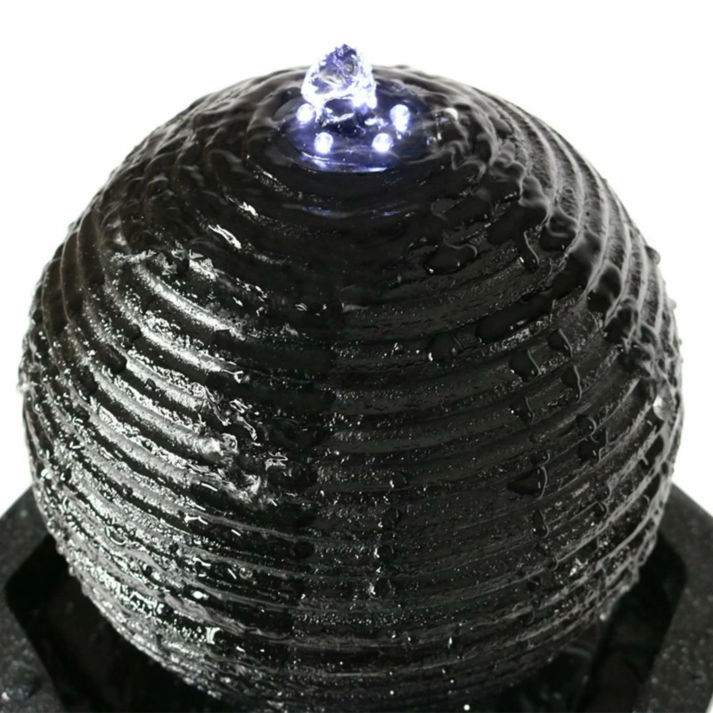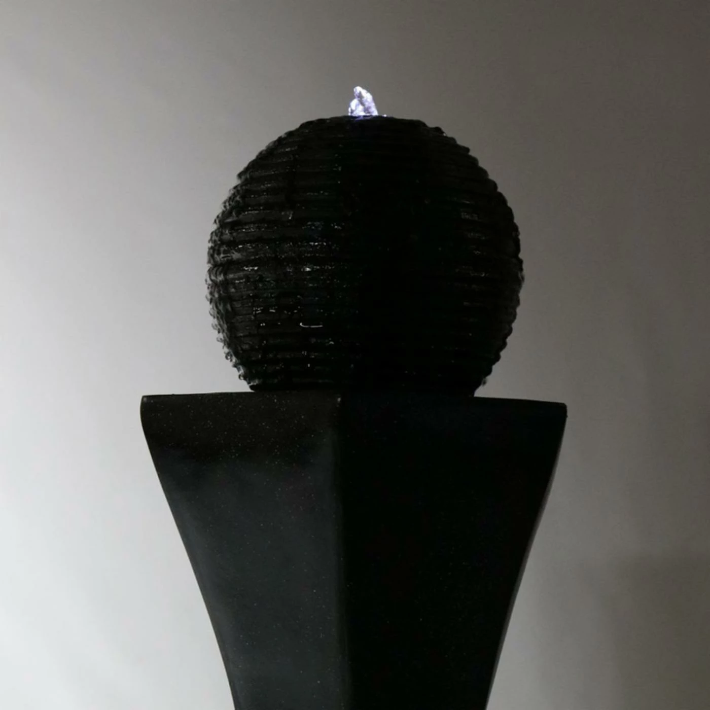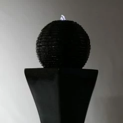 Bring soothing tranquility to your outdoor space with the Sunnydaze Decor Pedestal and Ball Solar-on-Demand Water Fountain . A ribbed sphere sits atop an hourglass column for a unique architectural look. Both are crafted from polyresin with a modern black finish. The submersible water pump is solar-powered, meaning there’s no need for plumbing or electricity!