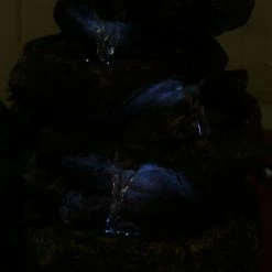 The Sunnydaze Stacked Rocks Tabletop Fountain with LED Light can be placed on an indoor table to give your home the relaxing sounds of gently flowing water. This fountain is crafted in the form of stacked rocks, and includes LED lighting for added illumination.