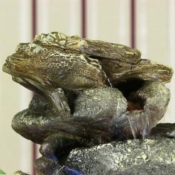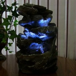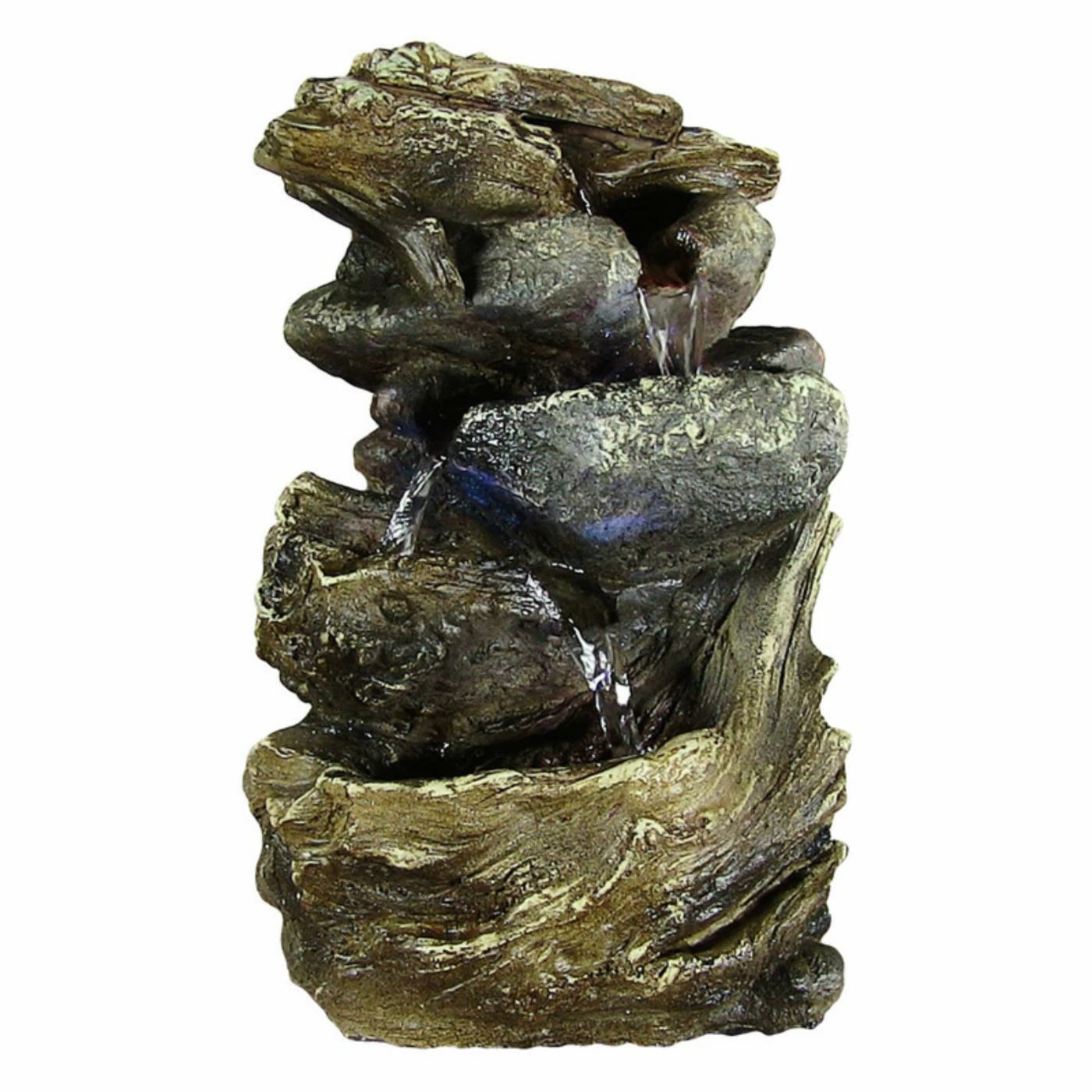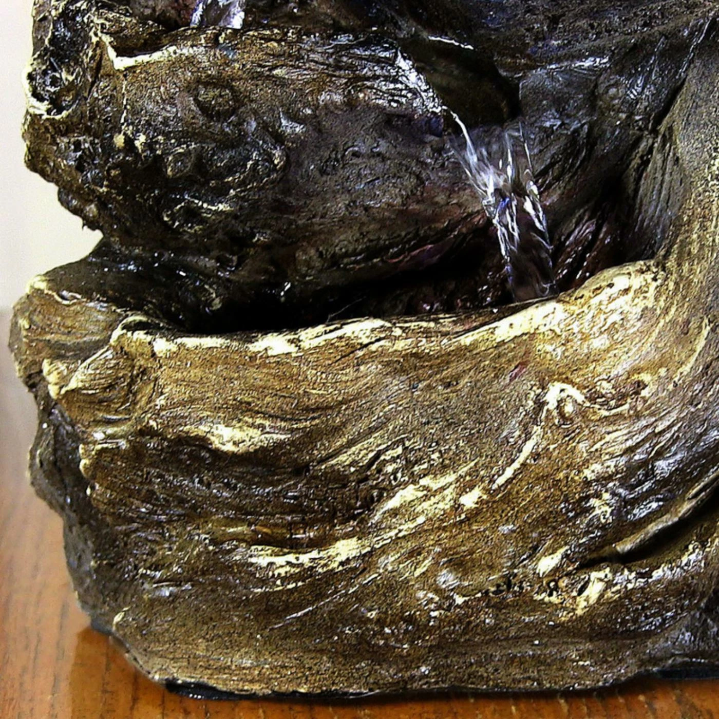 The Sunnydaze Tiered Rock and Log Tabletop Fountain with LED Light can be placed on an indoor table to fill your home with the relaxing sounds of gently flowing water. This fountain is crafted in a rustic log design and includes LED lighting for nighttime illumination. Foot pads help keep your surfaces protected.