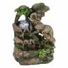 It’s remarkable what a little moving water can do for your dΓ©cor, especially in the case of the Ore International Dolphin Table Fountain. Three hand-painted dolphins set an inspiring scene, while the flowing water is illuminated by multi-colored LED lights and operates with an included adjustable pump. A faux crystal ball rotates and spins when the water is running, and the table fountain itself is crafted of durable polyresin. A 56-inch black cord is included.